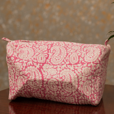 Awdhesh Kumar Blush Vine Organizer Cotton Hand Block Printed Toiletry Bags for Women