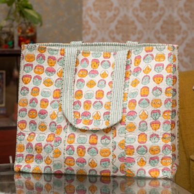 Awdhesh Kumar Vintage Garden Cotton Hand Block Printed Tote Bag for Women