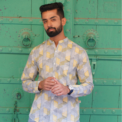 Full Sleeve Indian Hand Block Print Shirt Game of Line Retro Design Shirt 100% Cotton Fabric