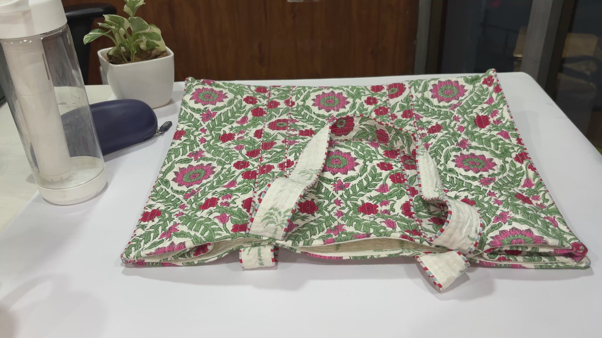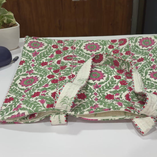 Crafted from soft quilted cotton, this tote provides generous space for all your essentials—perfect for shopping, office use, travel, or daily errands. The sturdy handles ensure a comfortable grip, while the flap-style top enhances both style and practicality. Lightweight, durable, and visually striking, it is an ideal companion for those who enjoy unique, handcrafted designs.