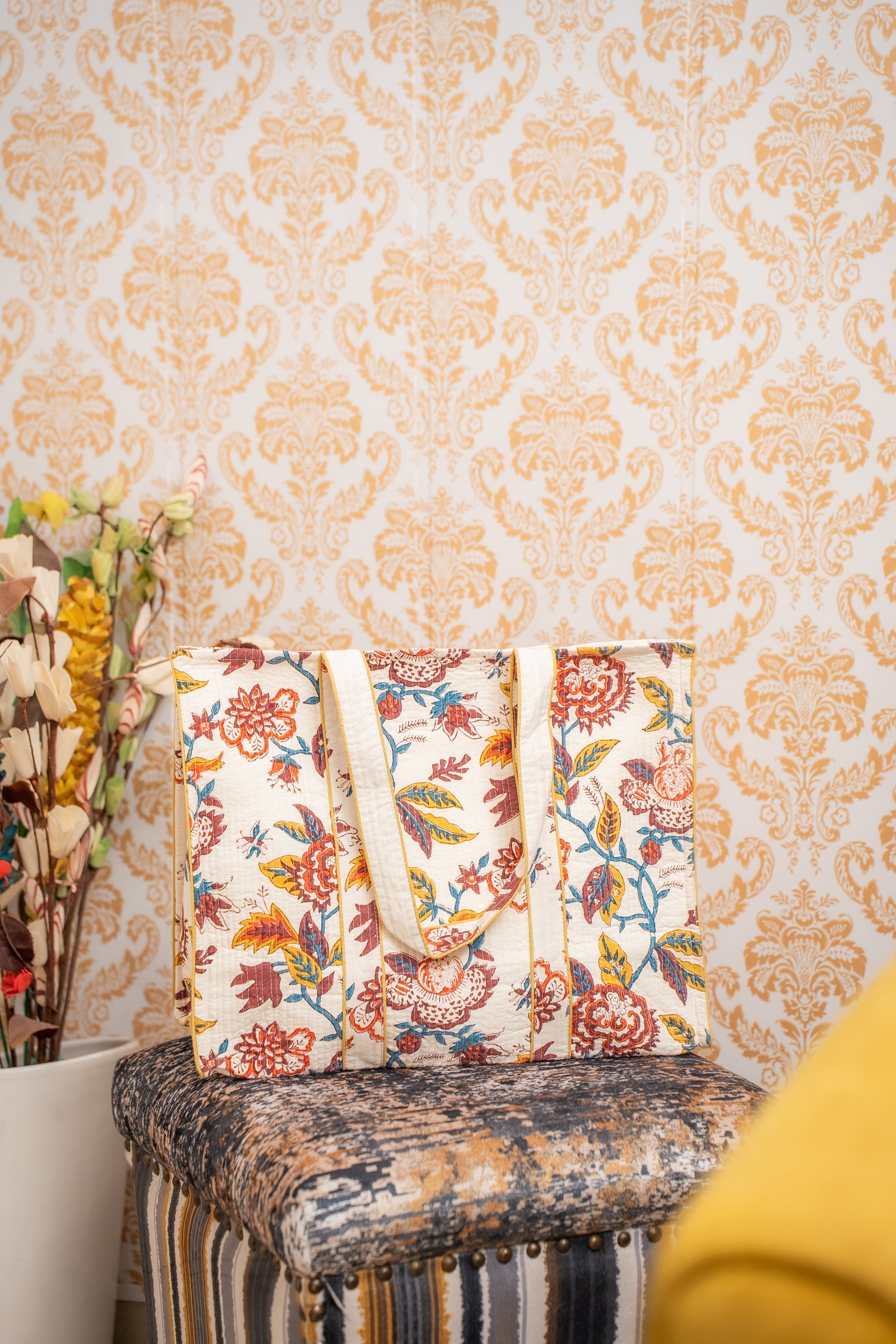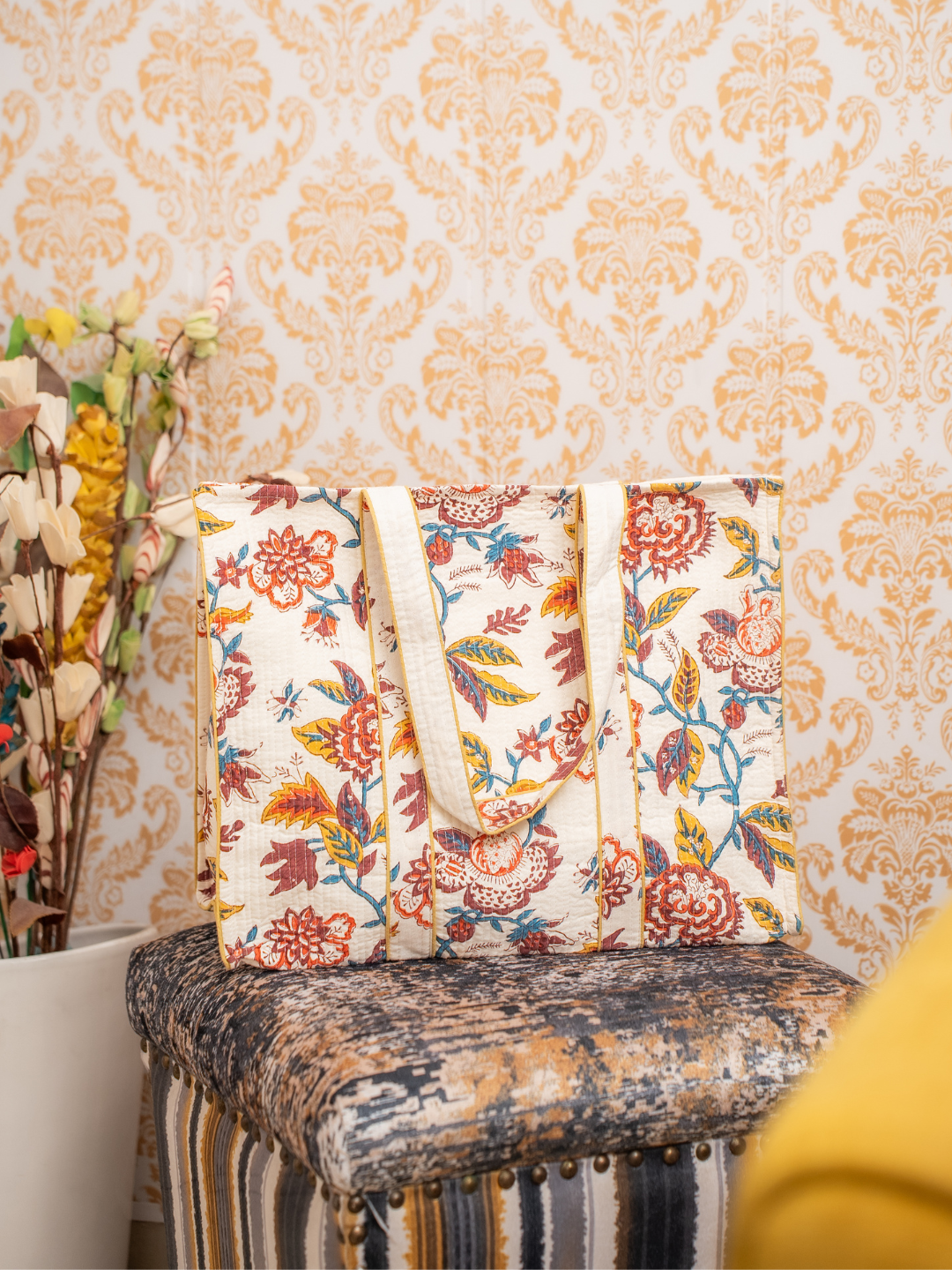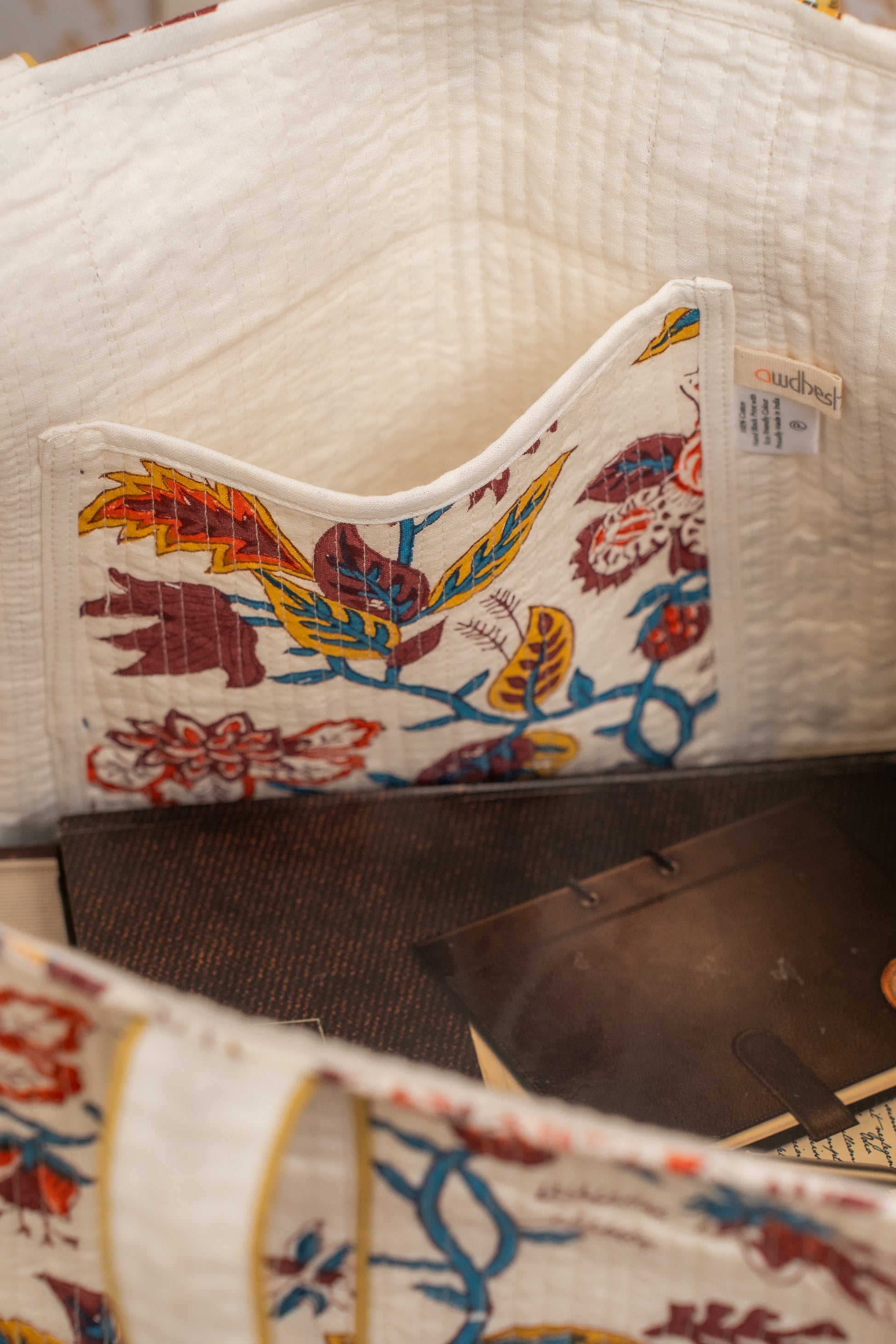 Awdhesh Kumar floral tapestry Cotton Hand Block Printed Tote Bag for Women