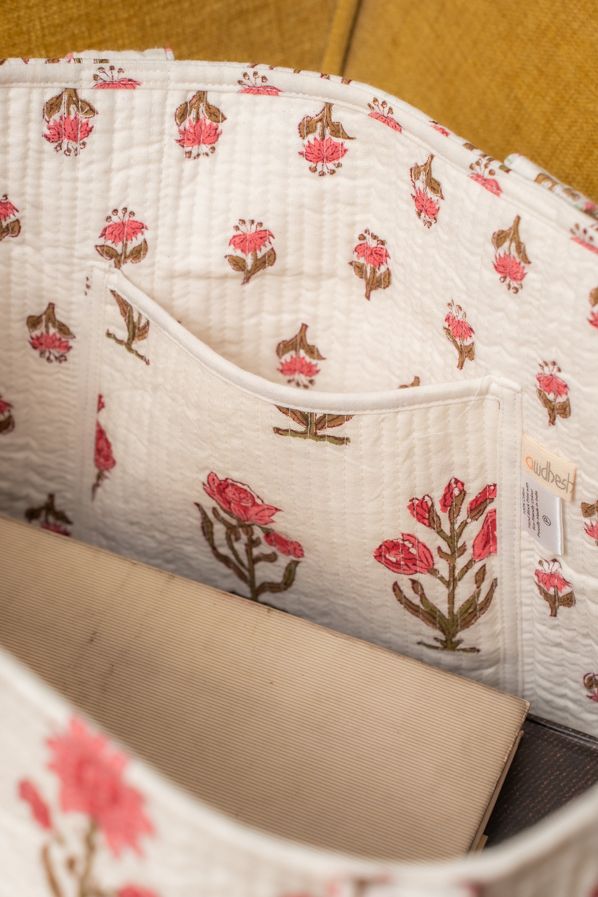 Awdhesh Kumar Repeating Blossom Cotton Hand Block Printed Tote Bag for Women