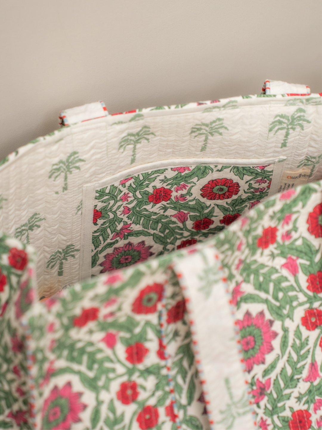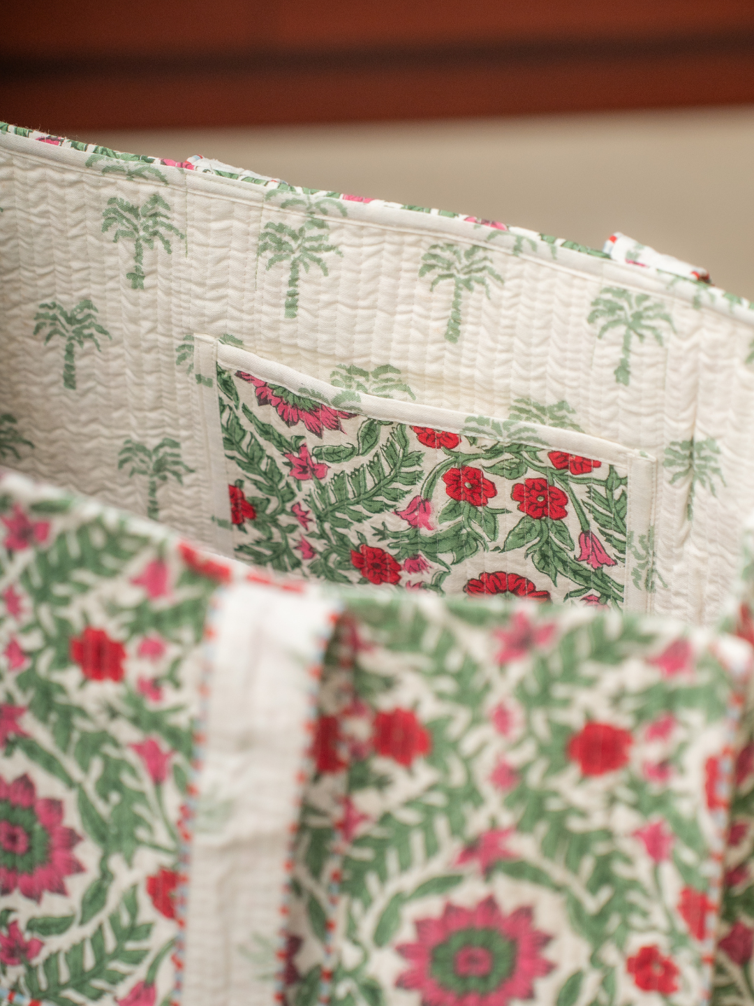 Its sturdy cotton handles ensure comfort, while the traditional block-print style adds a touch of timeless charm. Lightweight, eco-friendly, and stylish, this tote effortlessly blends functionality with artistic design