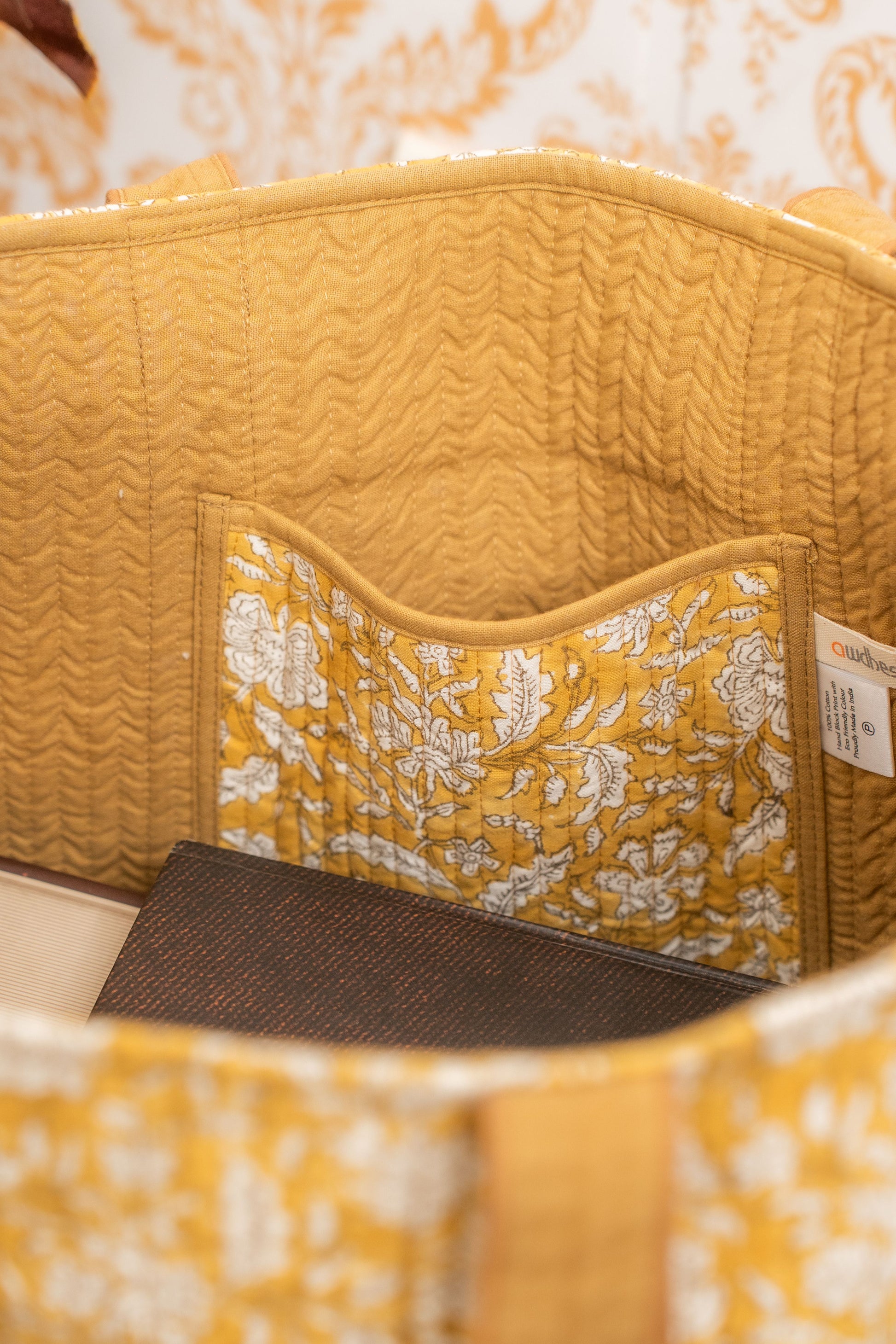 Awdhesh Kumar Sunflare Floral Carryall Cotton Hand Block Printed Tote Bag for Women