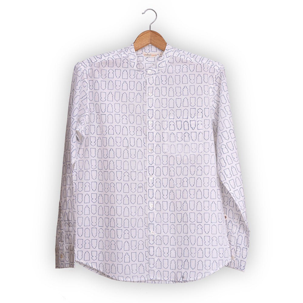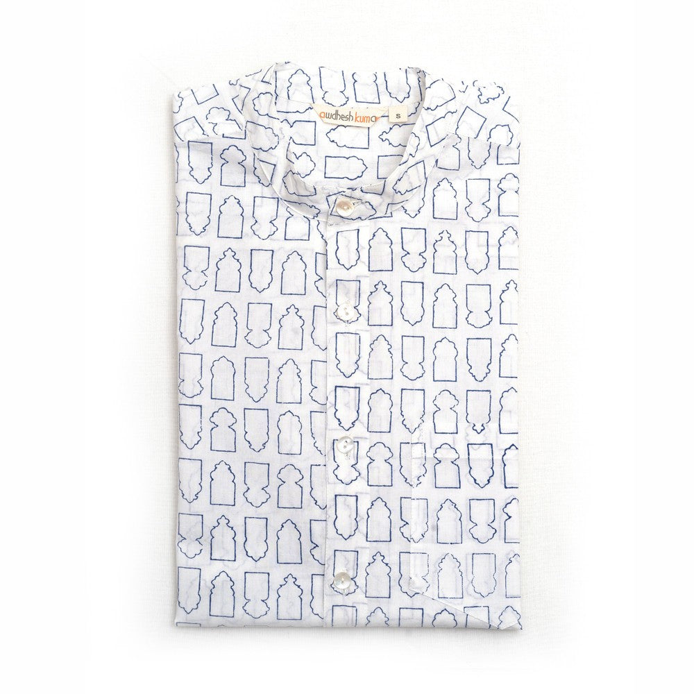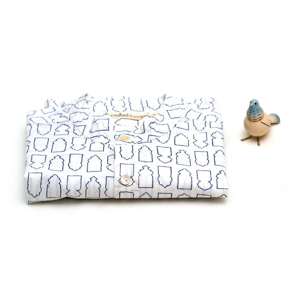 This is hand block printed men's full sleeve shirt, printed by using traditional hand block printing This is hand block printed men's half sleeve shirt, printed by using traditional hand block printing technique, on 100% cotton 60's cambric fabric, with free pigment dyes.