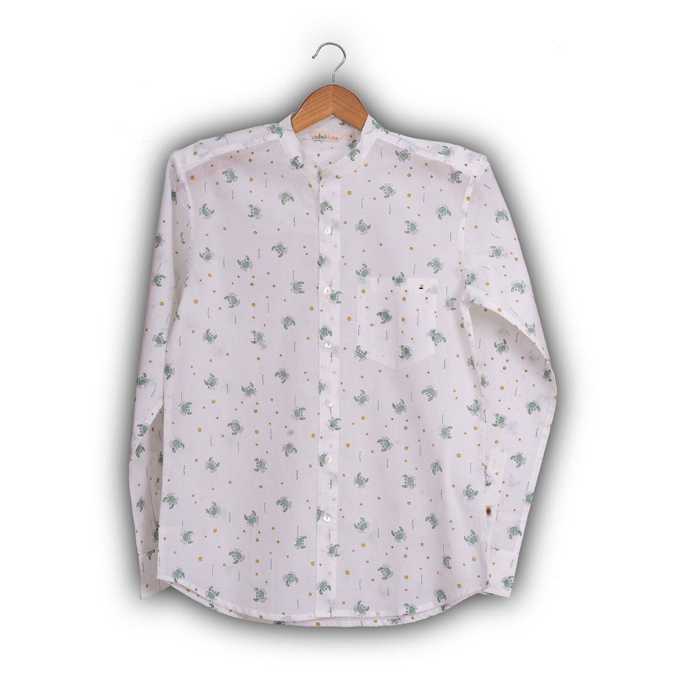 This is hand block printed men's full sleeve shirt, printed by using traditional hand block printing This is hand block printed men's half sleeve shirt, printed by using traditional hand block printing technique, on 100% cotton 60's cambric fabric, with free pigment dyes.