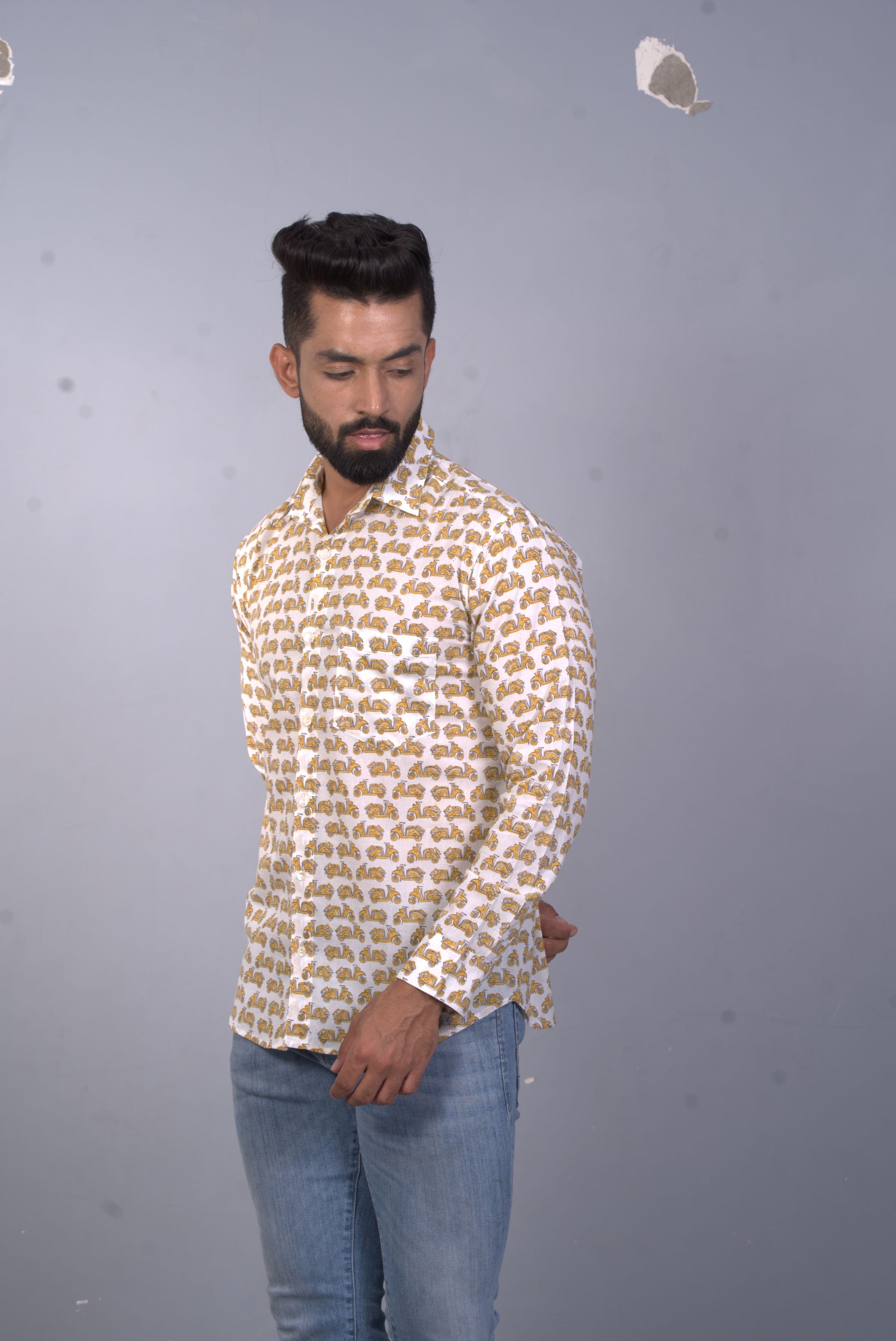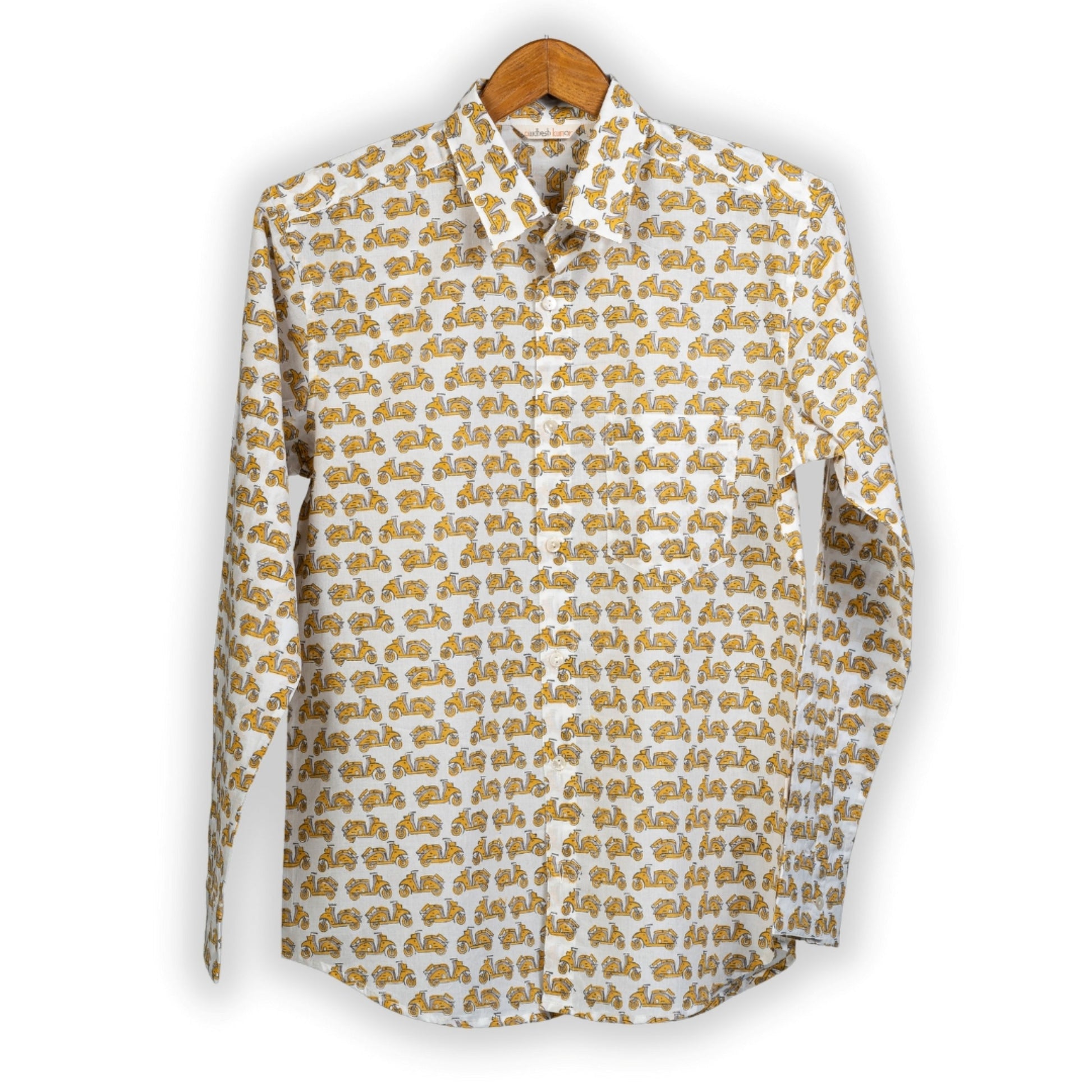 Full Sleeve Indian Hand Block Print Shirt Vespa Scooter Design Shirt 100% Cotton Fabric