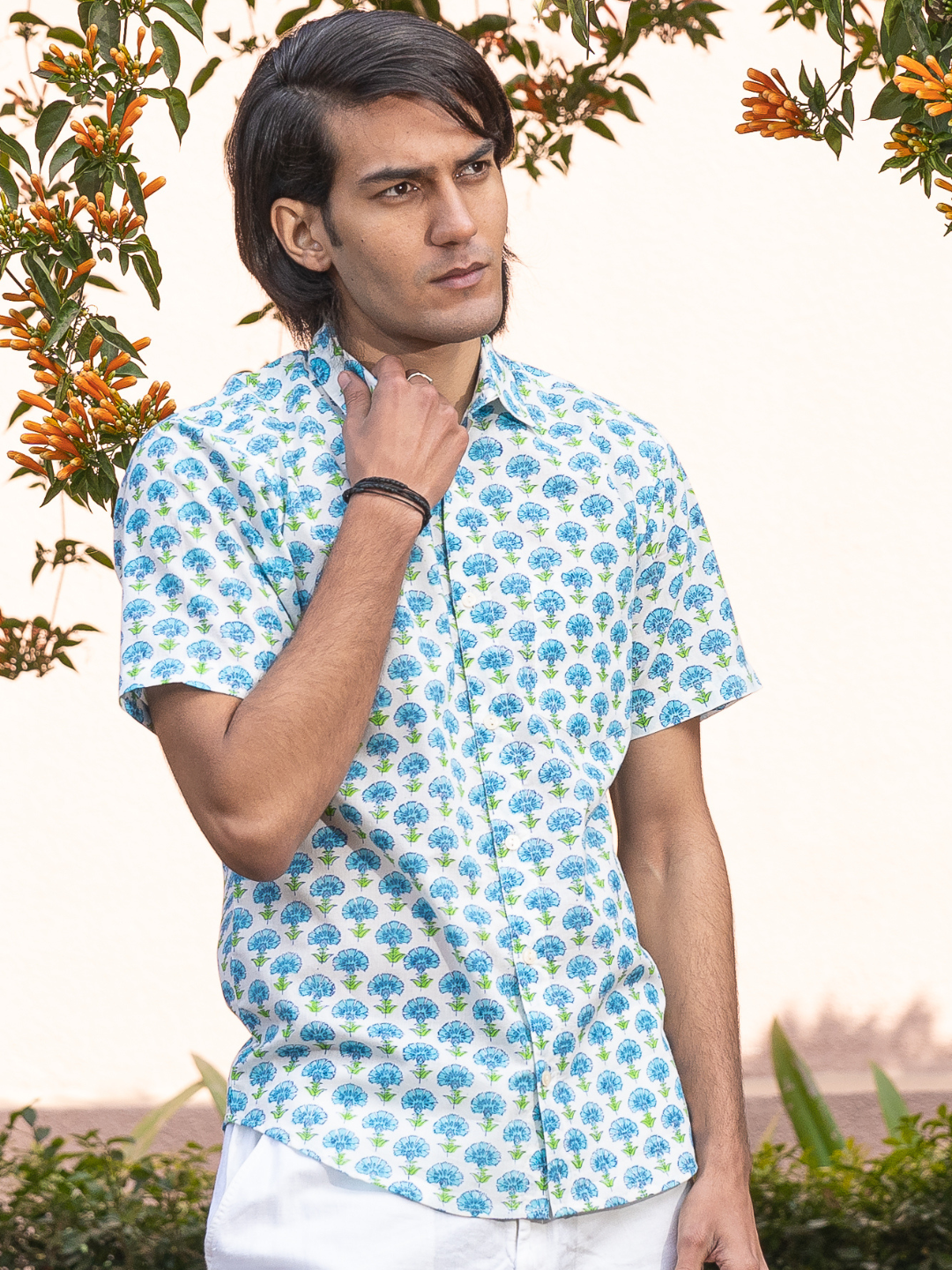 half sleeve Indian Hand Block Print Shirt Jaipur Fresh Floral Vibe Shirt 100% Cotton Fabric