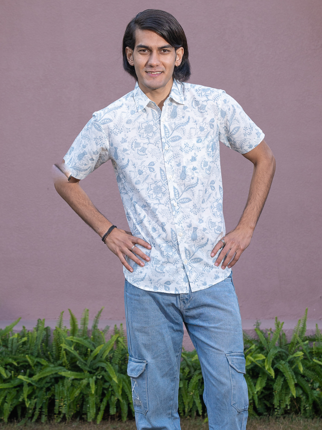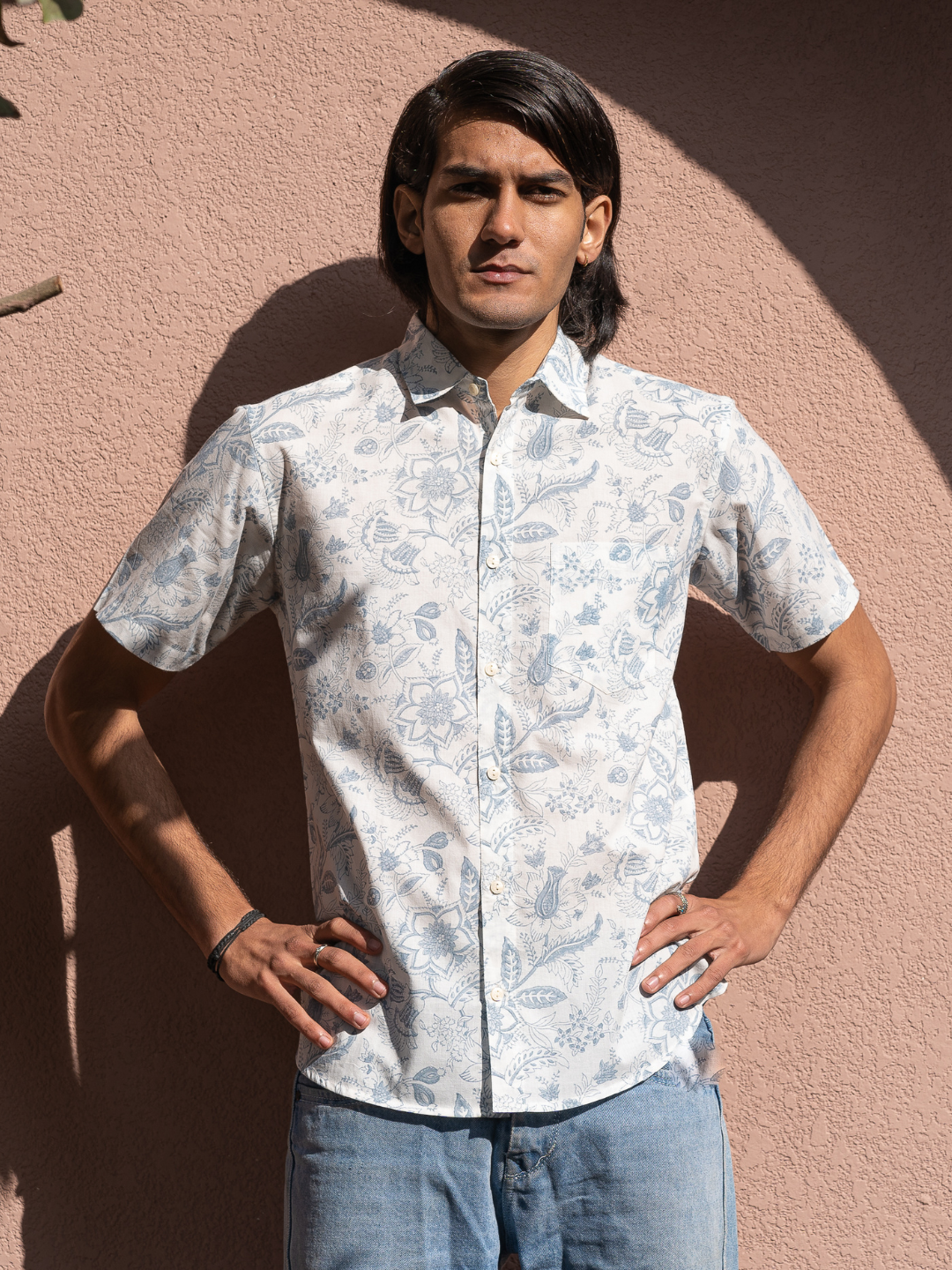 half sleeve Indian Hand Block Print Shirt Jaipur Royal Bloom Shirt 100% Cotton Fabric