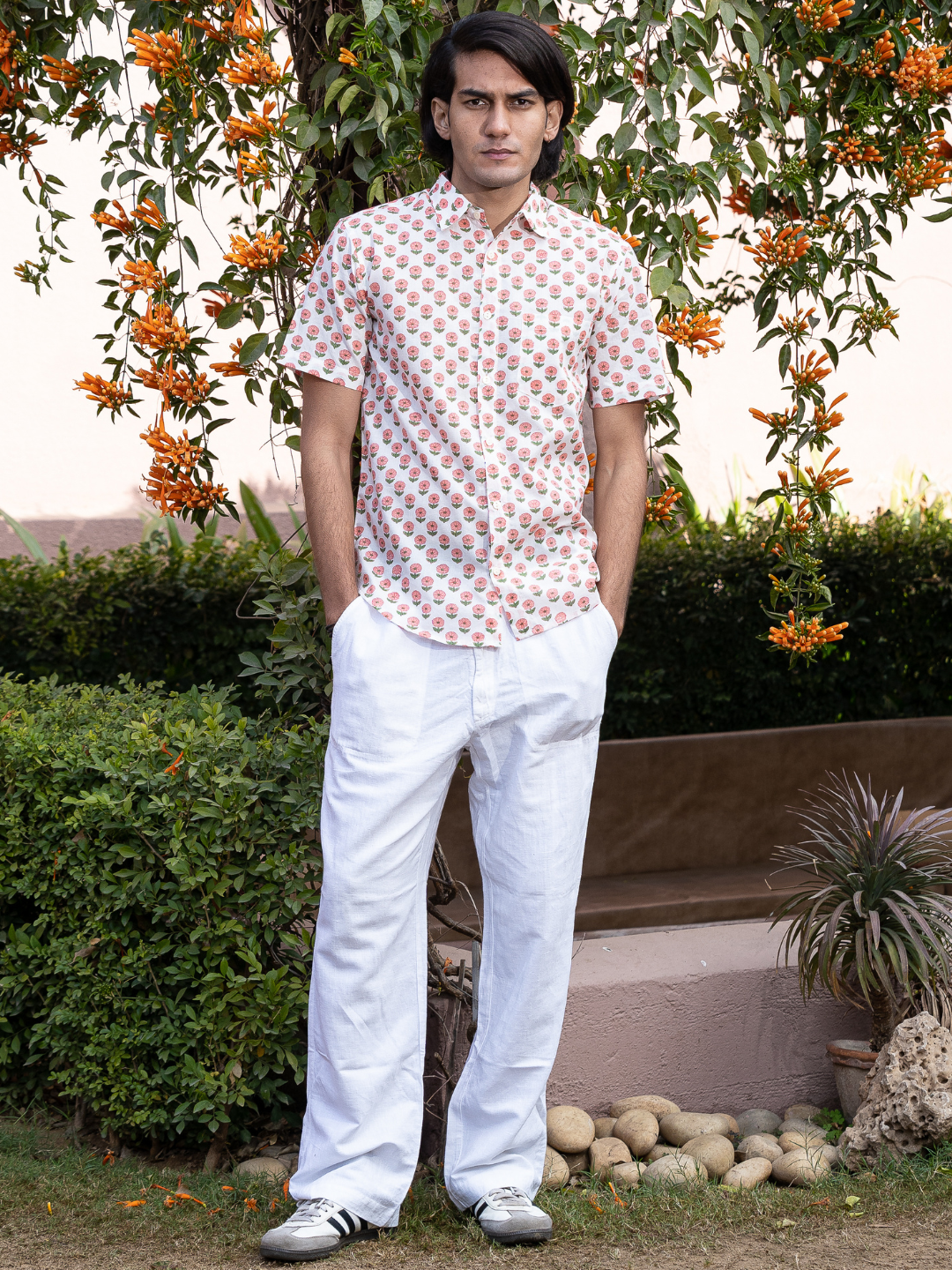 half sleeve Indian Hand Block Print Shirt Jaipur Soft Petal Pattern Shirt 100% Cotton Fabric