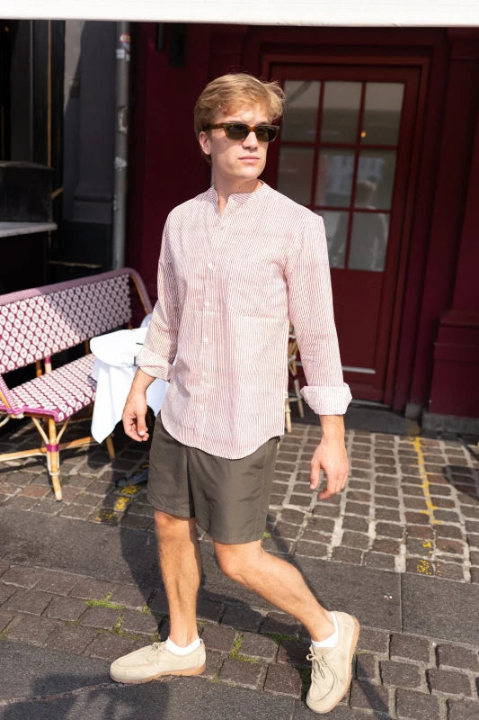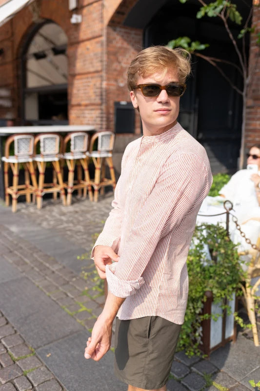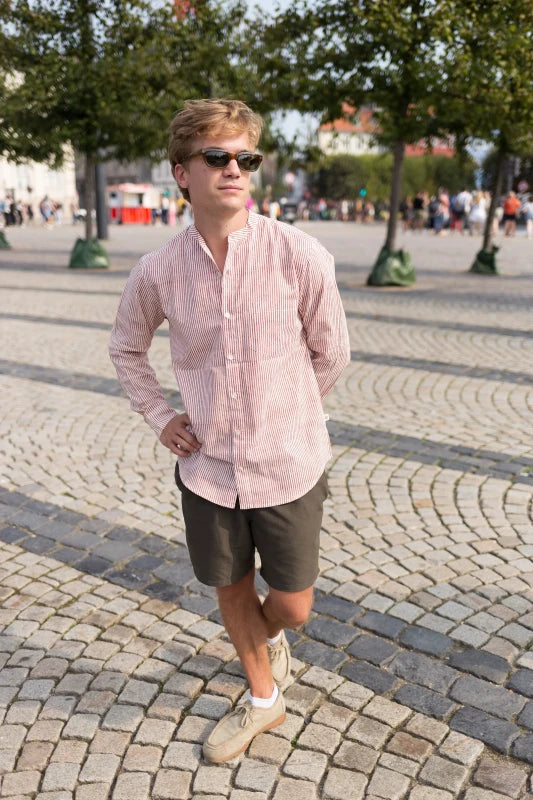 Full Sleeve Indian Hand Block Print Shirt Rust Linear Stripes Design Shirt 100% Cotton Fabric