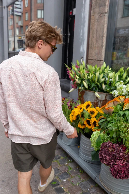 This is hand block printed men's Full sleeve shirt, printed by using traditional hand block printing This is hand block printed men's half sleeve shirt, printed by using traditional hand block printing technique, on 100% cotton 60's cambric fabric, with free pigment dyes.