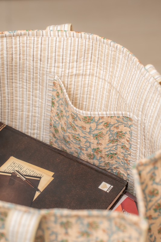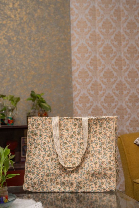 Awdhesh Kumar Vintage Flora Cotton Hand Block Printed Tote Bag for Women