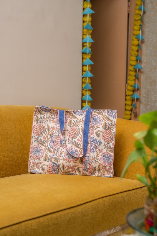 Awdhesh Kumar block-printed floral Cotton Hand Block Printed Tote Bag for Women