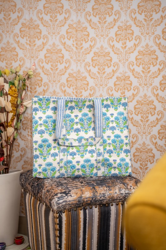 Awdhesh Kumar Mughal-inspired floral Cotton Hand Block Printed Tote Bag for Women