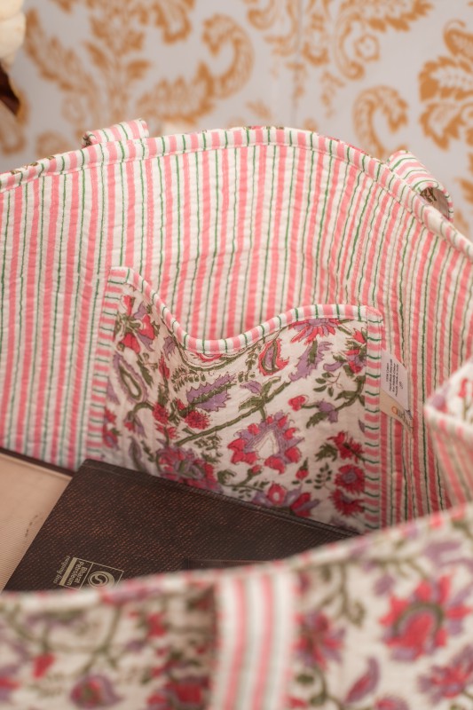 Awdhesh Kumar Blush Bloom Carryall Cotton Hand Block Printed Tote Bag for Women