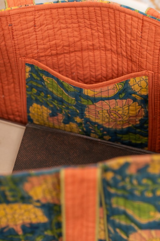 Awdhesh Kumar Mehndi Bloom Bag Cotton Hand Block Printed Tote Bag for Women